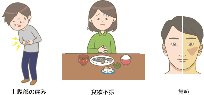 初期の膵臓がんには、目立つ自覚症状が見られません。しかし進行に伴い、以下の症状が現れることがあります。