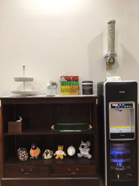 診察までのお時間や治療後に、お茶とクッキーなどをお召し上がりいただきながら、